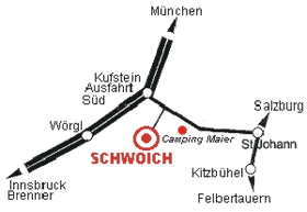 weiter an Ausfahrt Schwoich vorbei bis Abfahrt rechts Camping Maier.